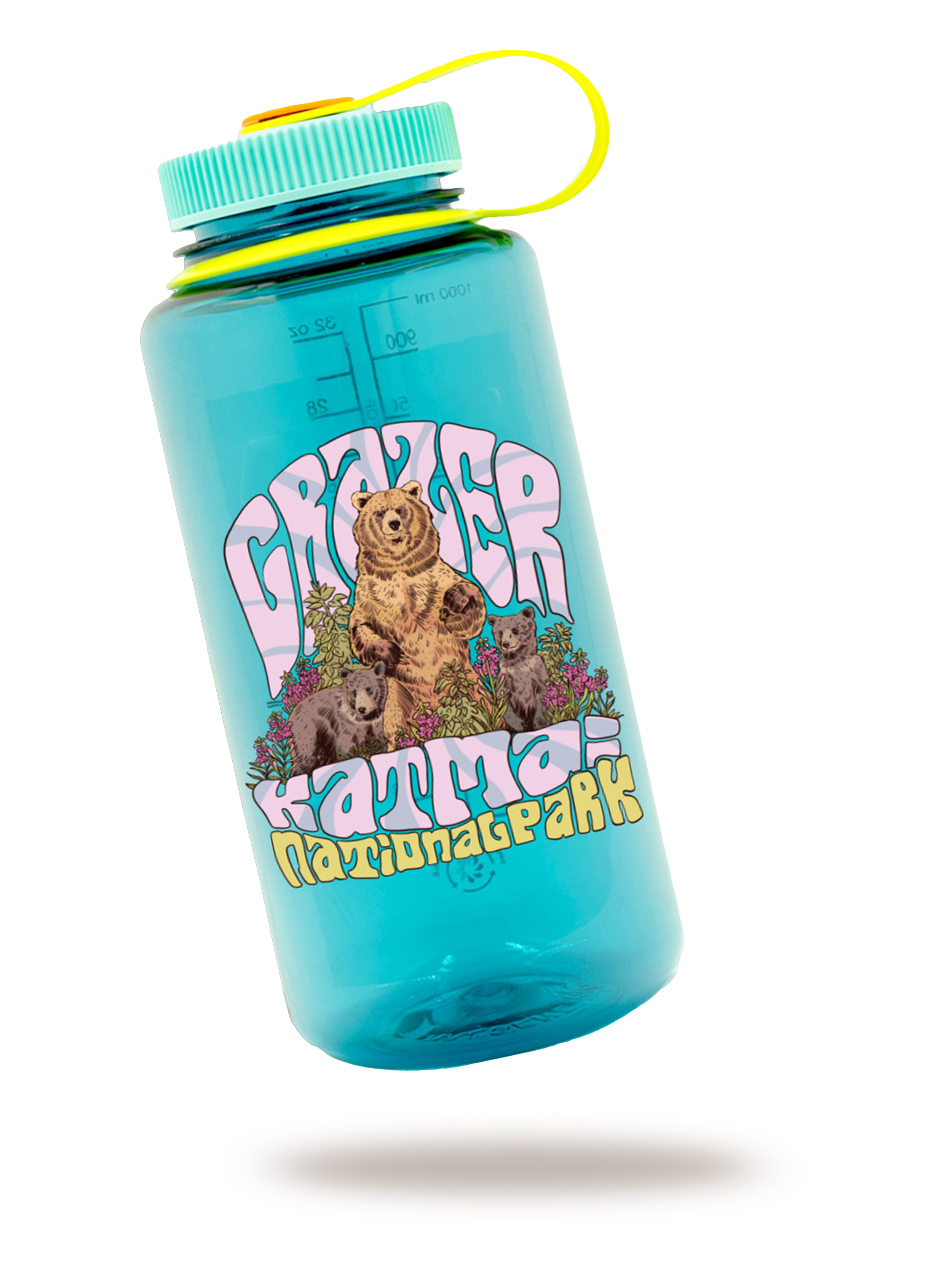 This 32 oz. wide-mouth Nalgene Sustain bottle in Cerulean features a beautifully detailed illustration of 128 Grazer and her two cubs by artist Anastasia Ward, bringing a beloved Brooks River family to life in a design made for everyday adventure. Crafted from recycled materials as part of Nalgene’s Sustain line, this durable, eco-conscious bottle is BPA/BPS-free, dishwasher safe, and proudly made in the USA. Built to handle trails, classrooms, or bearcam watch parties alike, it’s a reliable companion that celebrates Katmai’s iconic bears wherever you go.