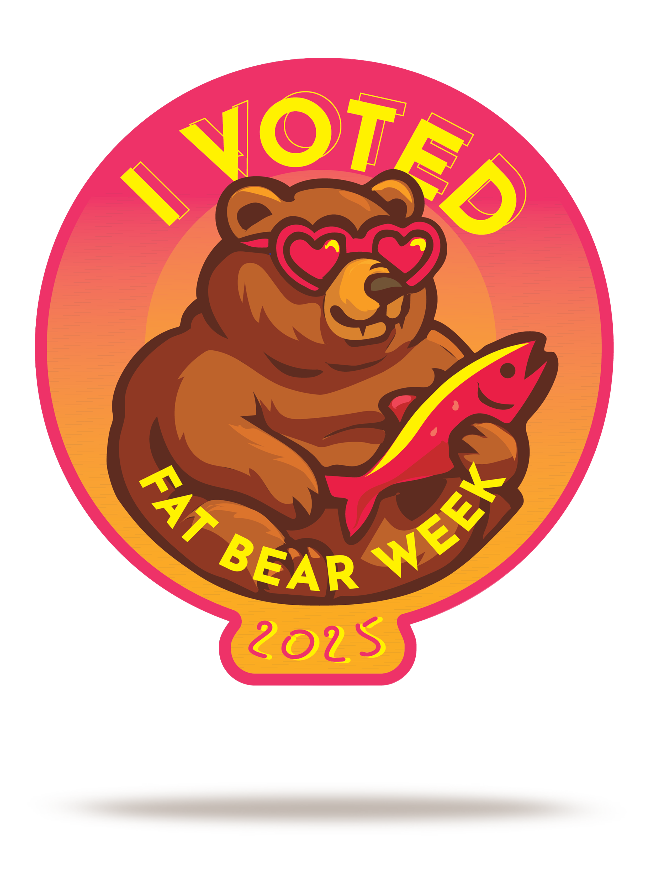 Cast your vote. Stick with pride. This 2" x 2" “I Voted” sticker celebrates Fat Bear Week 2025 with a cheerful design by Alaskan artist Sara Wolman that captures the fun and excitement of crowning this year’s champion. Printed on durable, weatherproof material for long-lasting use, it’s perfect for water bottles, laptops, cars, or anywhere you want to show off your Fat Bear pride with a small but spirited reminder of your vote.