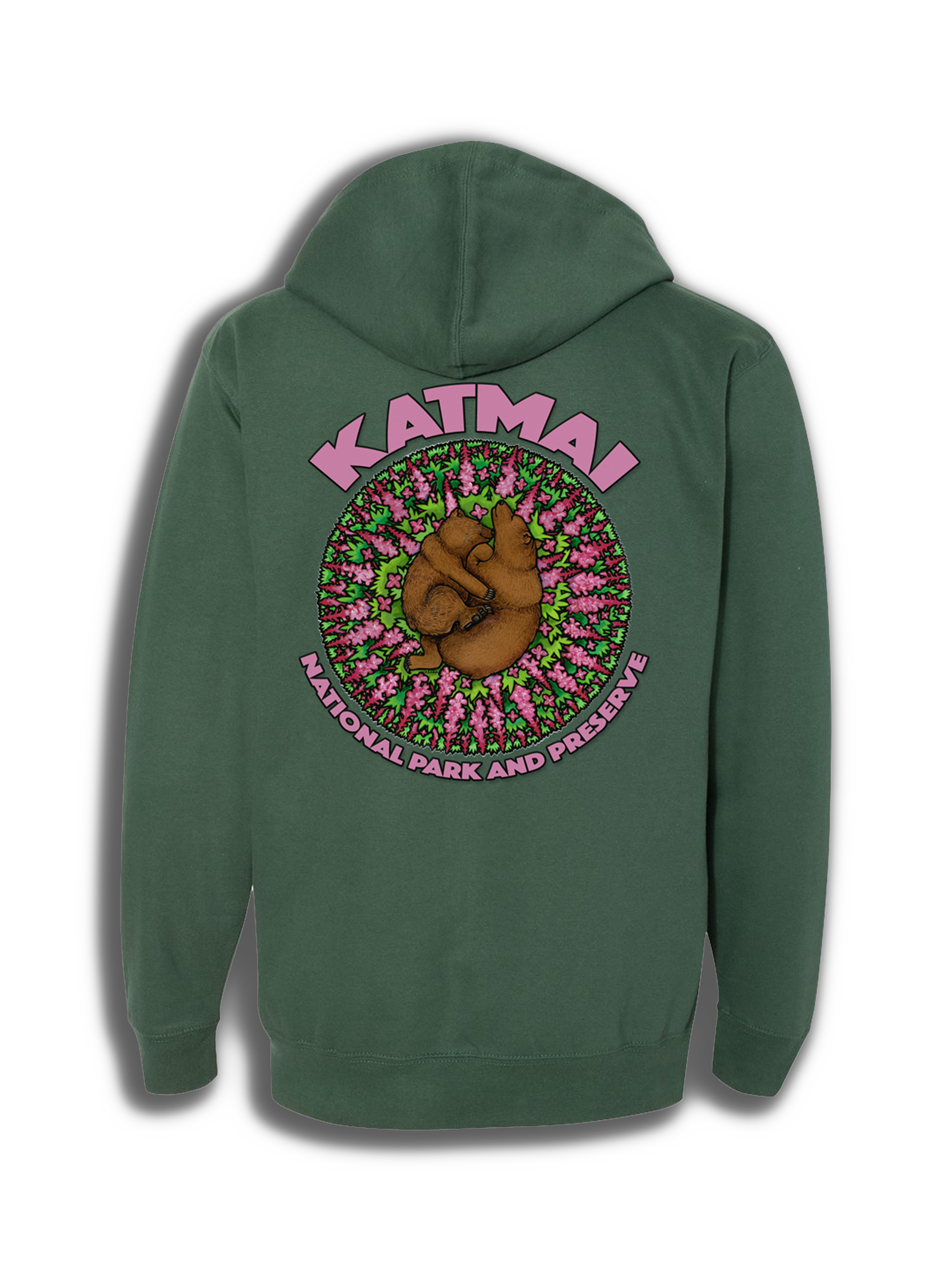 Fireweed in bloom. Bears in the wild. This hoodie features a serene design by Alaskan artist Valisa Higman, capturing a quiet Katmai moment with a brown bear and her cub surrounded by the vibrant pink of summer fireweed. Printed large on the back with fine detail and vivid color, the artwork brings the beauty of Katmai’s peak season into your everyday layers, while a small Katmai Conservancy logo on the chest offers a subtle nod to the place it supports. Crafted from an 80% organic cotton and 20% recycled polyester fleece blend with a 100% cotton face for softness and print clarity, this unisex-fit hoodie is DTG-printed for lasting color and detail, creating a comfortable and meaningful tribute to Alaska’s wild heart.